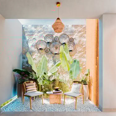 DESCRIPCIÓN: El desarrollo del proyecto responde a las necesidades que planteó el usuario al pedir cerrarse hacia el exterior por motivos de privacidad y seguridad, es por ello que se planteó una arquitectura introspectiva que hacia el exterior se manifiesta como un juego de planos y volúmenes opacos y sinceros, sin ornamentación, además, este concepto se refuerza con el empleo de elementos naturales, como el revestimiento de piedra para otorgar calidez a la composición, asimismo, en el ingreso se coloca vegetación como un ente vivo que te recibe al ingresar a la vivienda, y que a su vez sirve como un amortiguador acústico para aislar el interior de la vivienda al exterior inmediato.